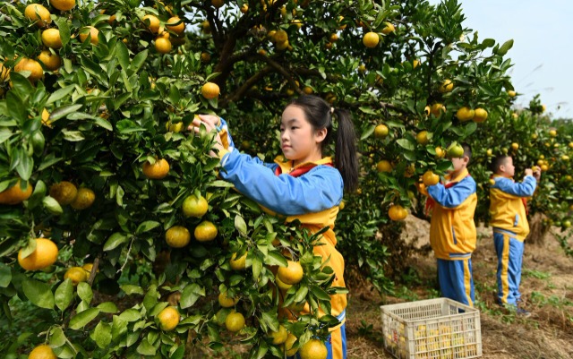 學(xué)生在采摘柑橘。通訊員 滕治中? 攝