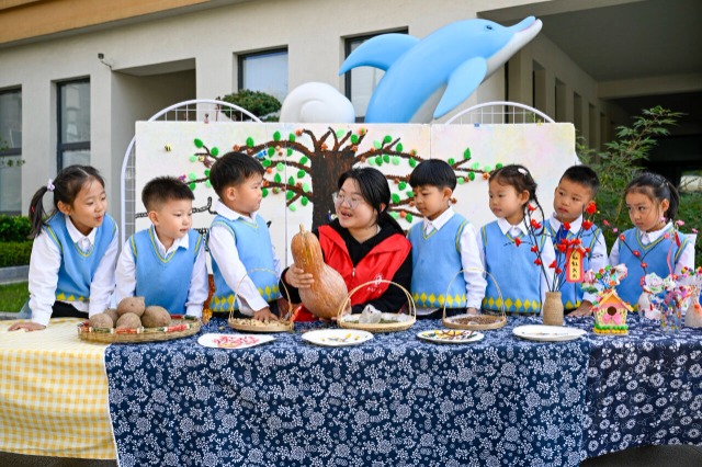 10月29日,在安徽省合肥市廬陽區(qū)林店街道榮城幼教集團景灣分園,小朋友們正在識別糧食谷物,學習勤儉知識。通訊員 趙明 攝
