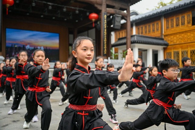 學(xué)生正在進(jìn)行傳統(tǒng)武術(shù)操展演。通訊員 趙明 攝
