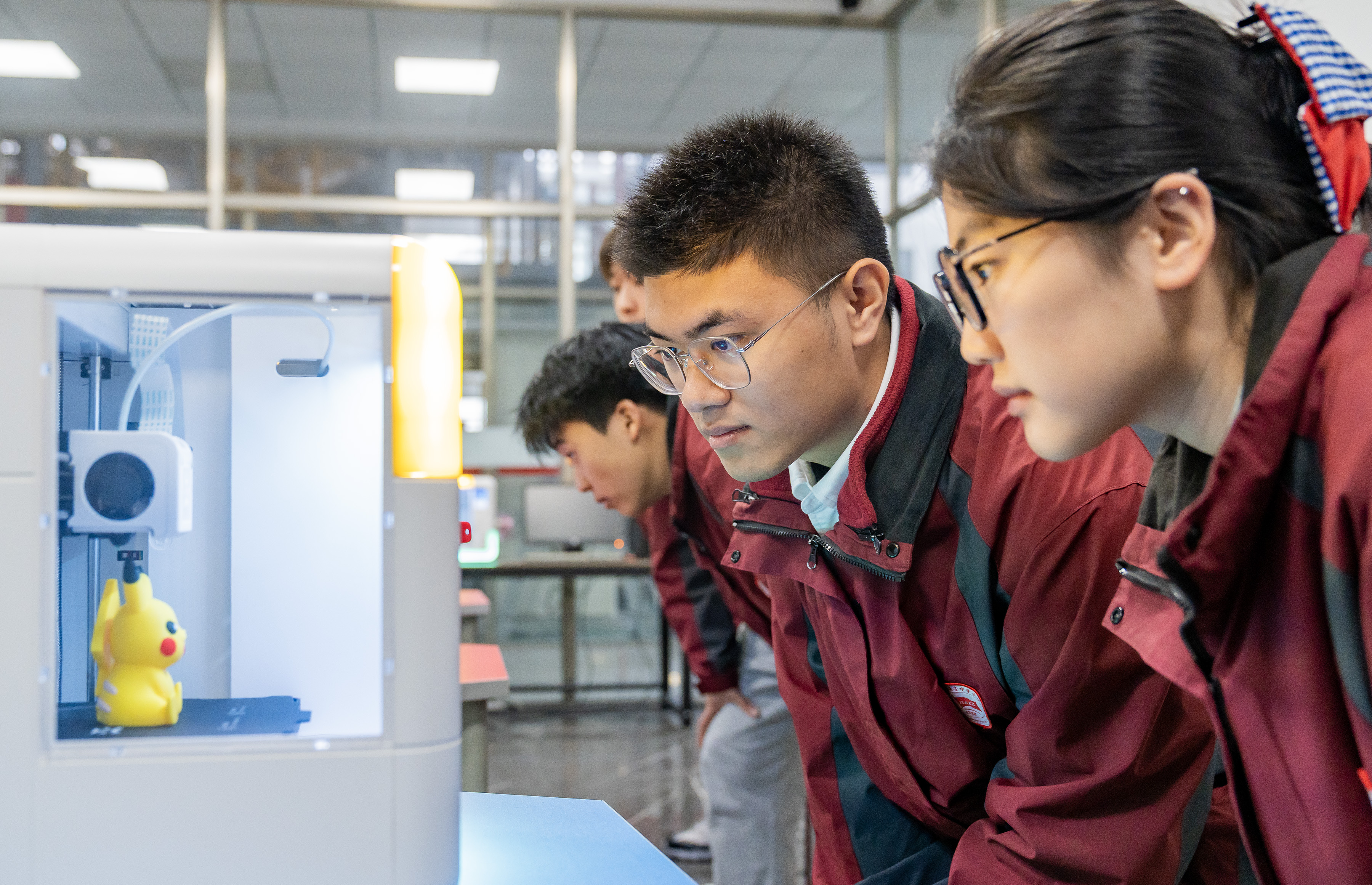 11月17日,江蘇省海安中等專業(yè)學(xué)校的學(xué)生們在老師的指導(dǎo)下進行3D打印實訓(xùn)。該校深入推進產(chǎn)教融合和科教融匯,針對性地開設(shè)3D打印、工業(yè)機器人應(yīng)用、數(shù)控技術(shù)等特色課程,不斷提升學(xué)生的綜合職業(yè)技能水平和實操能力,促進人才供需高效匹配和職業(yè)教育高質(zhì)量發(fā)展。(中國教育報-中國教育新聞網(wǎng)通訊員 翟偉凱 攝)