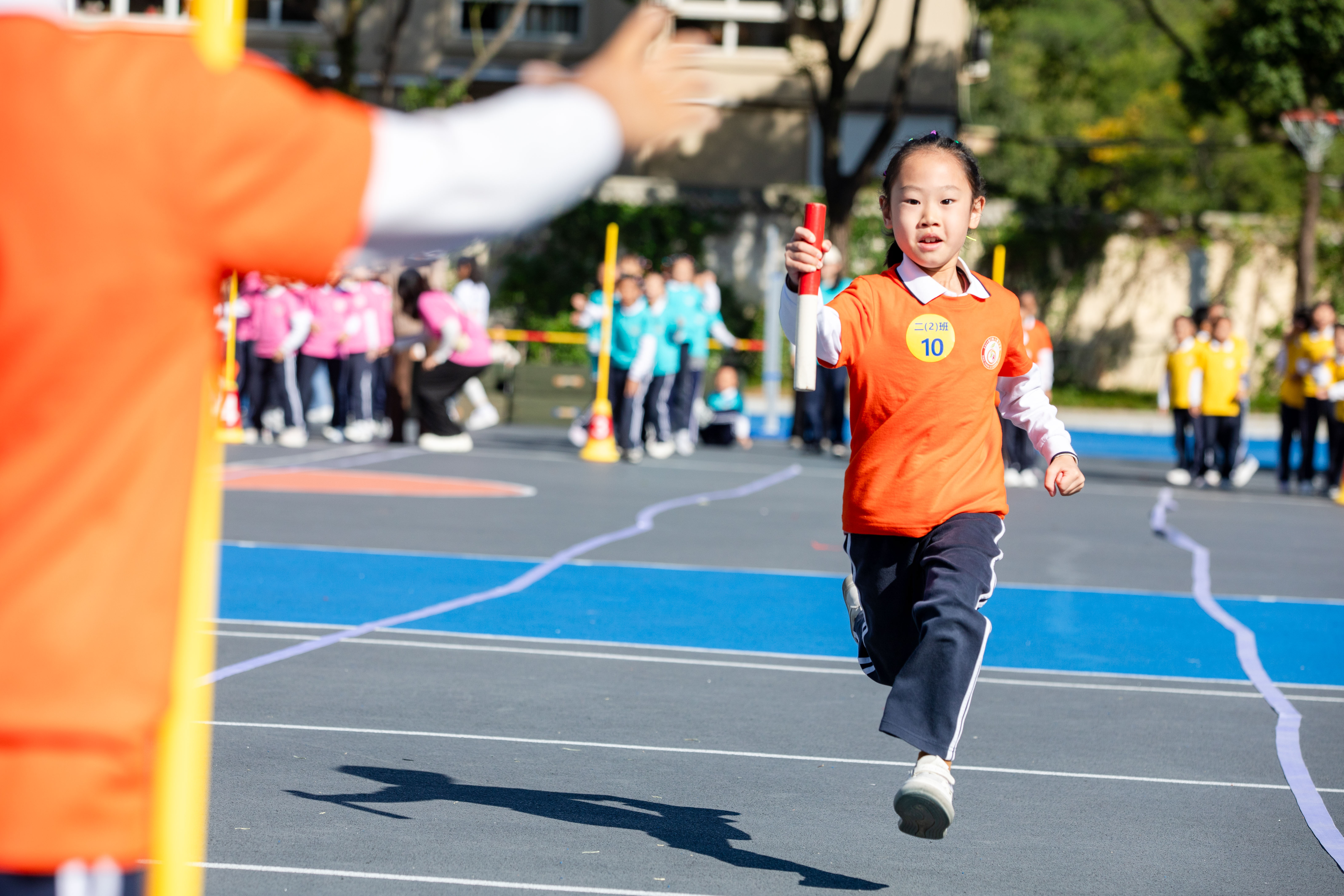 11月14日,浙江省溫州市第二實驗小學舉行第四屆秋季運動會,學生在參加接力比賽。劉吉利 攝