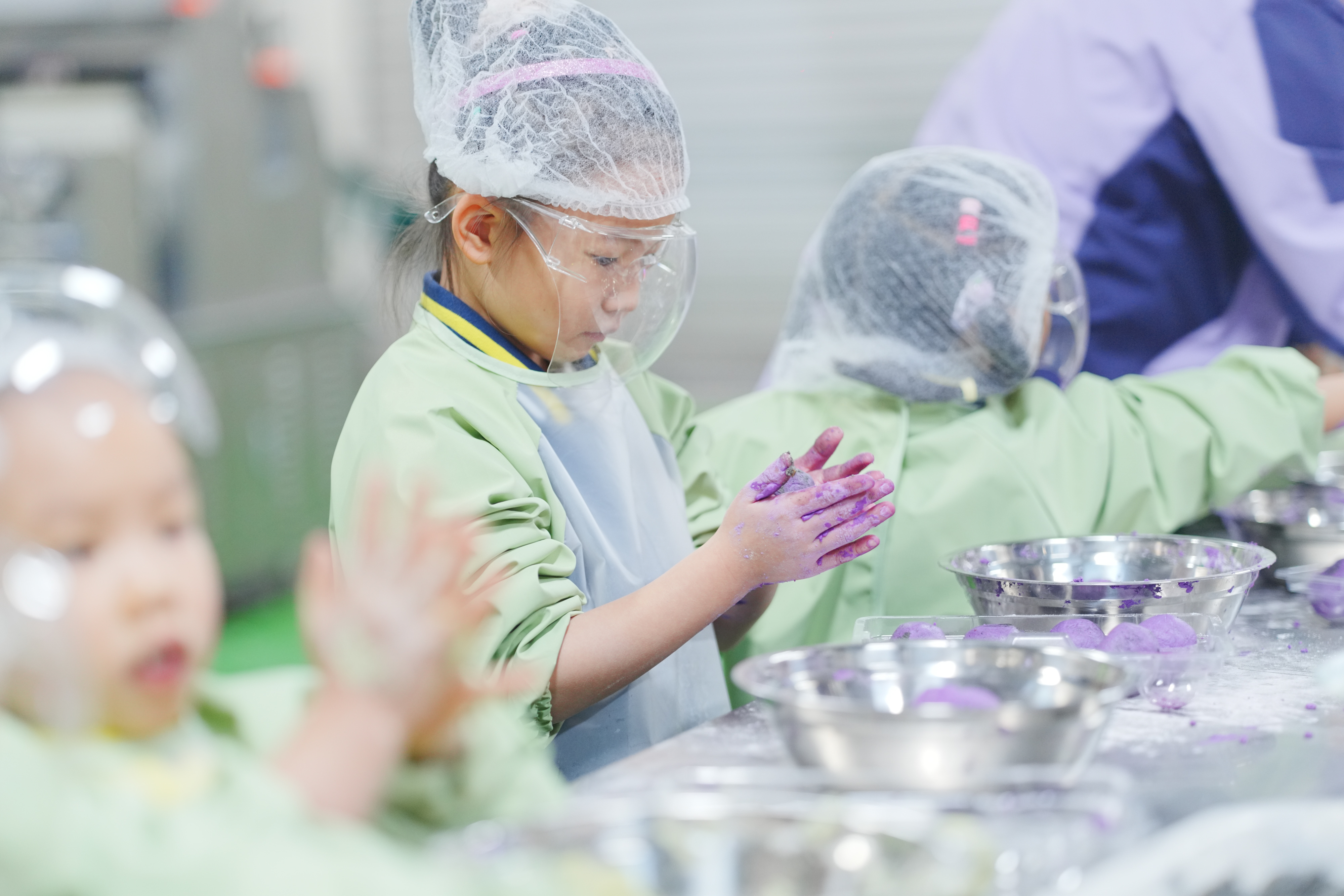 11月15日,在重慶市北碚區(qū)龍鳳橋街道鳳凰村全桂食品公司,孩子們?cè)诶蠋煹闹笇?dǎo)下體驗(yàn)包湯圓。秦廷富 攝