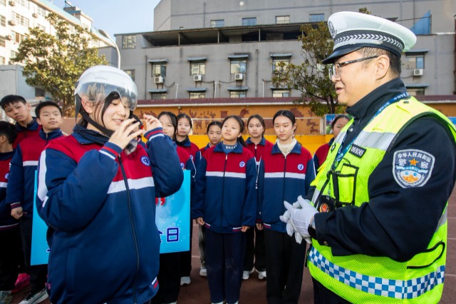 11月28日,湖北省襄陽(yáng)市諸葛亮中學(xué)開展全國(guó)交通安全日主題實(shí)踐活動(dòng),為同學(xué)們送上一堂干貨滿滿的“交通安全實(shí)戰(zhàn)課”?;顒?dòng)現(xiàn)場(chǎng),民警通過交通手勢(shì)現(xiàn)場(chǎng)教學(xué)、安全頭盔規(guī)范佩戴實(shí)操、交通標(biāo)識(shí)趣味識(shí)別、汽車盲區(qū)實(shí)景認(rèn)知等形式,打破傳統(tǒng)宣講模式,讓同學(xué)們?cè)诨?dòng)參與中直觀掌握交通安全知識(shí),切實(shí)提升交通安全素養(yǎng),筑牢青少年出行安全防線。中國(guó)教育報(bào)-中國(guó)教育新聞網(wǎng)通訊員 李旭暉 攝