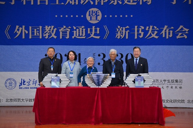 中國教育報(bào)-中國教育新聞網(wǎng)訊(記者 焦以璇)3月30日,“教育史學(xué)科自主知識(shí)體系建構(gòu)”學(xué)術(shù)研討會(huì)暨《外國教育通史》(21卷本)新書發(fā)布會(huì)在北京師范大學(xué)英東學(xué)術(shù)會(huì)堂舉辦?!锻鈬逃ㄊ贰肥潜本煼洞髮W(xué)教授吳式穎與福建師范大學(xué)教授李明德主持的國家出版基金項(xiàng)目“外國教育通史”的最終研究成果,也是北京師范大學(xué)教育學(xué)部教育史學(xué)科自主知識(shí)體系建構(gòu)的重大標(biāo)志性成果之一。