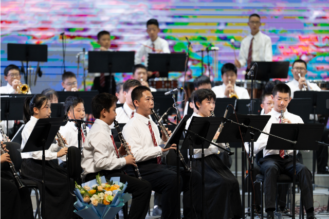 音樂(lè)會(huì)以氣勢(shì)恢宏的交響管樂(lè)藝術(shù)形式,奏響新時(shí)代人民愛(ài)國(guó)愛(ài)黨、團(tuán)結(jié)奮進(jìn)的時(shí)代強(qiáng)音,《燈火里的中國(guó)》《黃河》鋼琴協(xié)奏曲等經(jīng)典旋律,帶領(lǐng)師生穿越烽火歲月,在激昂樂(lè)章中重溫紅色記憶,在悠揚(yáng)曲調(diào)里感受家國(guó)情懷。