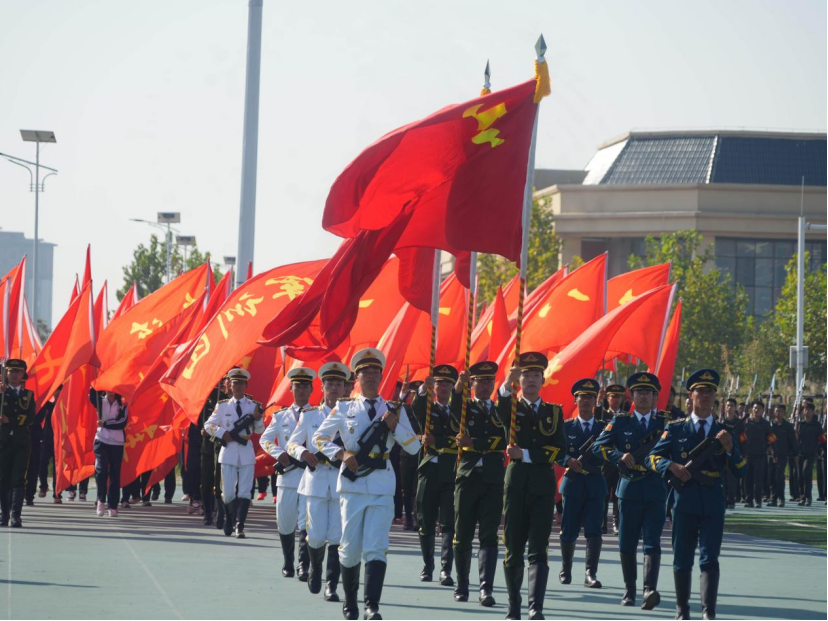 唐工大黨委書(shū)記李金生宣布軍訓(xùn)會(huì)操開(kāi)始。伴隨著鏗鏘有力的《分列式進(jìn)行曲》,由2025級(jí)新生組成的受閱方隊(duì)意氣風(fēng)發(fā)、斗志昂揚(yáng),邁著矯健整齊的步伐依次通過(guò)主席臺(tái)接受檢閱。同學(xué)們目光堅(jiān)定、口號(hào)響亮、動(dòng)作規(guī)范,充分展現(xiàn)了為期2周的軍事技能訓(xùn)練取得的成果和新時(shí)代青年學(xué)子朝氣蓬勃、奮發(fā)向上的精神風(fēng)貌。