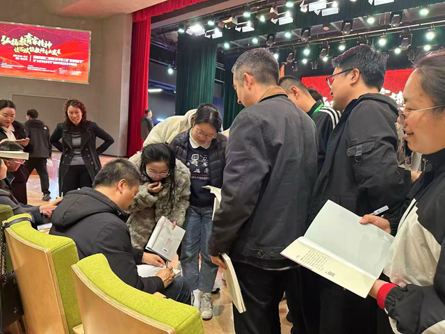 圖為活動期間老師們找魏智淵交流簽名。?活動主辦方供圖