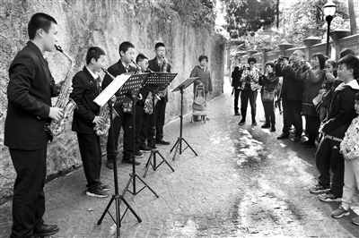 本報訊(記者 熊杰)一曲提琴協(xié)奏曲《鼓浪嶼之波》,讓游客感受鼓浪嶼的音樂風(fēng)情。近日,剛放寒假,廈門音樂學(xué)校的學(xué)生就走上鼓浪嶼街頭,開展現(xiàn)場演奏,為游客介紹音樂知識、傳播音樂文化。