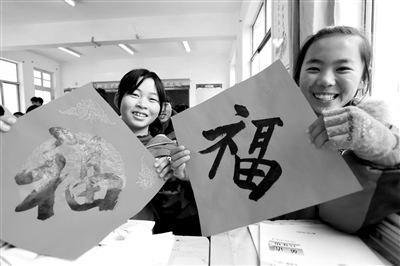 近日,江蘇省東??h洪莊中學(xué)學(xué)生展示教師分發(fā)的“?!弊?。該校組織教師書寫千余張不同形體的“?!弊址职l(fā)給學(xué)生,以此喜迎新年。 張開虎 李廣豹 攝