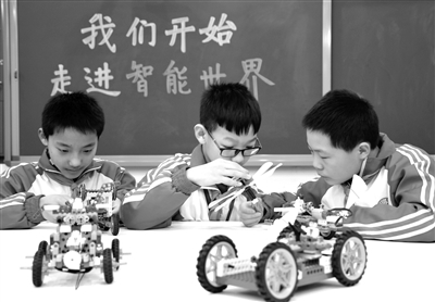 近日,在河北省邢臺市橋西區(qū)南大郭小學創(chuàng)新實驗室,學生在開學第一課上組裝機器人模型。