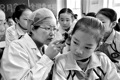 2月28日,在河北省新樂市實(shí)驗(yàn)小學(xué),新樂市醫(yī)院醫(yī)生在為學(xué)生檢查耳道。當(dāng)日,該醫(yī)院組織聽力專家走進(jìn)學(xué)校,通過耳朵模型解析、雙耳聽力檢測、內(nèi)耳清潔等環(huán)節(jié),幫助學(xué)生從小養(yǎng)成愛耳護(hù)耳的好習(xí)慣,增強(qiáng)自我保護(hù)耳朵的意識。3月3日是第20個(gè)全國“愛耳日”,今年的主題是“關(guān)愛聽力健康,落實(shí)國家救助制度”。