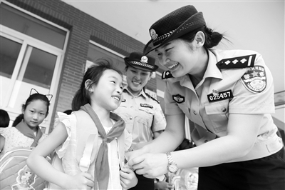 5月24日,“愛心警察媽媽”為鄉(xiāng)村留守兒童送上新書包。當(dāng)日,安徽省淮北市公安局相山分局組織女民警帶著書包、籃球、足球、跳繩等,來到轄區(qū)渠溝鎮(zhèn)郭王村高溪小學(xué)走訪慰問留守兒童。近年來,淮北市相山公安分局組織全局女民警開展?fàn)幃?dāng)“愛心警察媽媽”活動(dòng),每名女民警與一名鄉(xiāng)村留守兒童結(jié)對(duì)子,利用業(yè)余時(shí)間走訪幫扶,呵護(hù)孩子們健康成長。萬善朝 攝