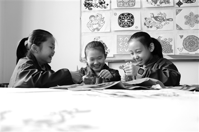 圖為民勤縣東關(guān)小學(xué)師生在剪紙。