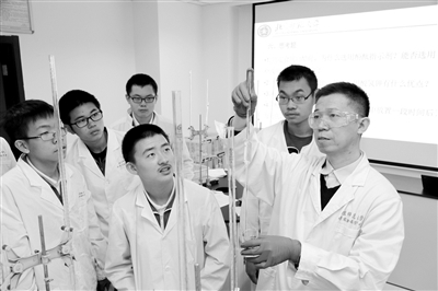 “化海啟航”項(xiàng)目是東城區(qū)青少年教育學(xué)院與高校、科研院所合作培養(yǎng)人才的項(xiàng)目之一,是針對(duì)有較高化學(xué)素養(yǎng)的高中生開設(shè)的提升課程。每個(gè)周末,來(lái)自東城區(qū)不同中學(xué)的高一高二學(xué)生,都會(huì)走進(jìn)北京師范大學(xué)的化學(xué)實(shí)驗(yàn)室,跟著北師大化學(xué)學(xué)院的教授們學(xué)習(xí)。在這里他們拓展了學(xué)校化學(xué)學(xué)科知識(shí)的學(xué)習(xí),更讓他們高興的是,很多在學(xué)校做不了的化學(xué)實(shí)驗(yàn),都能在北師大專業(yè)的化學(xué)實(shí)驗(yàn)室里完成。一個(gè)學(xué)生說(shuō):“非常幸運(yùn)我能和志同道合的同學(xué)來(lái)到這里上課。這里的課讓我涉獵到更廣、更深的知識(shí),發(fā)展了我的興趣,挖掘了我的潛能,對(duì)我的學(xué)習(xí)和未來(lái)職業(yè)的選擇都非常有幫助?!?/P>