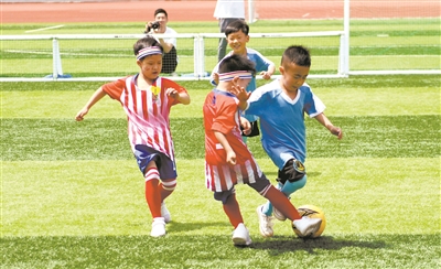 湖北省十堰市柳林幼兒園娃娃足球聯(lián)盟正在進(jìn)行激烈的3V3娃娃足球決賽。近日,該園開展了第一屆親子運(yùn)動(dòng)會(huì),讓幼兒在足球運(yùn)動(dòng)中享受樂趣、增強(qiáng)體質(zhì)。王俊麗 張建波 攝
