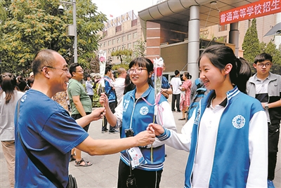 本報6月7日綜合消息 6月7日上午11點多,天津市自立中學(xué)高三學(xué)生王潤堯自信地從天津市第四十二中學(xué)考場走出,揚起胳膊做了個必勝的手勢。王潤堯的母親朱靜主動迎了上去,不斷地給兒子鼓勁兒。“自信心下妙筆生花,好狀態(tài)下能力揮灑。”說著話,朱靜給兒子送上了一個大大的擁抱。