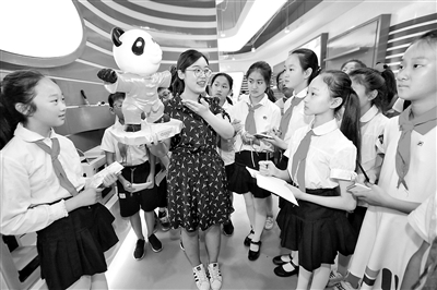 6月4日,江蘇省徐州市民主實(shí)驗(yàn)學(xué)校學(xué)生在聽(tīng)鼓樓區(qū)云創(chuàng)科技園工作人員介紹3D打印成型原理。當(dāng)日,該校組織學(xué)生走進(jìn)園區(qū)研學(xué),把,讓小學(xué)生近距離感受家鄉(xiāng)科技產(chǎn)業(yè)發(fā)展成就。