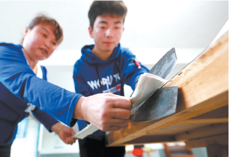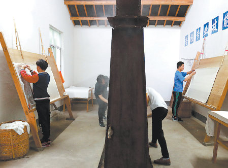 “這項看起來似乎很簡單的步驟,其實需要練習很多年才能真正上手?!睂W校教師汪海海介紹說,“撈紙考驗悟性和相互間的配合,漿水中的浸泡則考驗的是耐力,烘紙房考驗的是耐心,而牽紙、排紙需要的則是細致?!彼f,在這里,學生要學習的不僅是宣紙的制作工藝,更是對傳統(tǒng)的堅守和精益求精的職業(yè)精神。