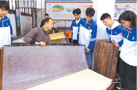 “培養(yǎng)具有‘工匠精神’的宣紙工藝傳承人,我們責無旁貸?!蓖艉:Uf,正是經(jīng)過歷經(jīng)時間檢驗的“嗆、捶、撈、曬、剪”的過程,一張張潔白規(guī)整的宣紙才得以誕生。同樣要經(jīng)過千錘百煉,我們的學生才能夠成長為合格的宣紙工藝傳承人。