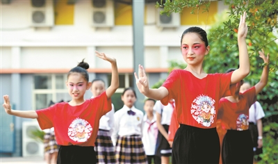 6月11日,在石家莊市裕華西路小學(xué),學(xué)生在進(jìn)行表演前的練習(xí)。當(dāng)日,河北省石家莊市裕華西路小學(xué)舉辦“弘揚(yáng)戲曲藝術(shù) 傳承經(jīng)典國粹”為主題的校園戲曲節(jié)活動,學(xué)生通過演繹經(jīng)典戲曲選段、戲曲文化社團(tuán)展示等形式,呈現(xiàn)戲曲特色課程的學(xué)習(xí)成果。新華社發(fā)(張曉峰 攝)