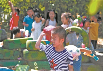 近日,記者在山東省淄博市張店區(qū)第一幼兒園了解到,創(chuàng)意迭出、不斷翻新的游戲,就是這里的孩子們?nèi)粘I钪凶钪匾摹肮φn”。