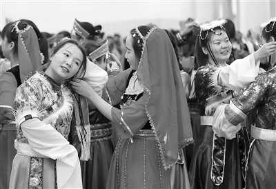 近年來,隴南師范高等??茖W(xué)校學(xué)前教育學(xué)院秉持“理論與實(shí)踐結(jié)合、保育與教育融合、基本素養(yǎng)與專業(yè)能力整合”的全程實(shí)踐、全人教育人才培養(yǎng)模式,以全面提高學(xué)生的專業(yè)知識(shí)技能和綜合職業(yè)素質(zhì)為宗旨,逐步構(gòu)建起“職前職后貫通、研訓(xùn)教一體、院地園協(xié)同”的人才培養(yǎng)體系,培養(yǎng)了大批高素質(zhì)學(xué)前教育專業(yè)人才。圖為舞蹈課前,學(xué)生在精心做準(zhǔn)備。