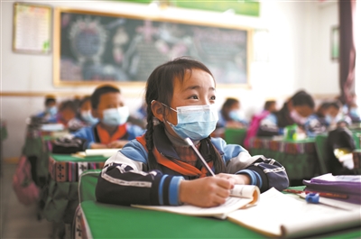 4月14日是青海省玉樹(shù)藏族自治州地震10周年。10年前的今天,玉樹(shù)在7.1級(jí)強(qiáng)烈地震中遭受重創(chuàng),當(dāng)?shù)夭簧傩I嵩獾綋p毀。震后10年的今天,玉樹(shù)教育發(fā)展水平顯著提升,初升高升學(xué)率從32%提高到98%,幼兒園入園率從3.5%提高到68%。圖為玉樹(shù)市第三完全小學(xué)二年級(jí)一班學(xué)生在上課。3月9日起,青海中小學(xué)已陸續(xù)開(kāi)始復(fù)課。新華社記者 張宏祥 攝