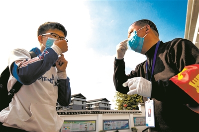 學(xué)校大門是校園疫情防控的第一道防線,間距排隊、測量體溫、物品消毒……層層“關(guān)卡”,保障學(xué)生安心入校。