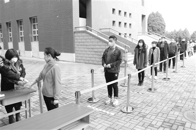 承德石油高等專(zhuān)科學(xué)校日前舉行疫情防控應(yīng)急演練,演練分為模擬學(xué)生入校、進(jìn)入公寓、進(jìn)入教學(xué)樓上課、餐廳就餐四個(gè)場(chǎng)景。在學(xué)生入校場(chǎng)景中,學(xué)生在校門(mén)外排隊(duì),按照警戒線保持一米以上間隔,在保衛(wèi)人員指導(dǎo)下順序進(jìn)校。進(jìn)入校門(mén)后,學(xué)生在指定地點(diǎn)測(cè)體溫,出示健康碼,確認(rèn)無(wú)異常到本系報(bào)到處報(bào)到,上交健康卡,確認(rèn)各項(xiàng)信息后去宿舍入住。現(xiàn)場(chǎng)還模擬了測(cè)溫出現(xiàn)異常情況的演練。(圖二)