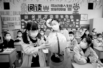 4月22日,浙江省東陽市吳寧第一小學(xué)的教師向?qū)W生科普地球知識。當(dāng)天是第51個世界地球日,今年地球日的主題是“珍愛地球 人與自然和諧共生”。該校通過開設(shè)主題課堂,引導(dǎo)學(xué)生愛護地球,認(rèn)知保護環(huán)境和地球的重要意義。
