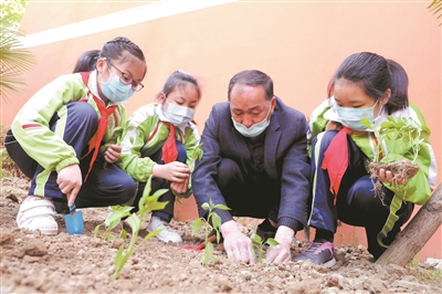 近日,安徽省淮北市第三實(shí)驗(yàn)小學(xué)教師帶領(lǐng)學(xué)生在勞動實(shí)踐基地上農(nóng)耕教育課。該校把“農(nóng)耕教育進(jìn)校園”作為特色教育之一,利用校園內(nèi)的空閑地塊開辟出勞動實(shí)踐基地,開設(shè)農(nóng)業(yè)生產(chǎn)知識第二課堂,讓孩子們在親近自然、體驗(yàn)農(nóng)耕中增長知識,養(yǎng)成熱愛勞動的好習(xí)慣。 萬善朝 攝