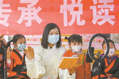 日前,江蘇省如皋市少兒圖書館工作人員和幼兒園小朋友們一起進行誦讀國學經(jīng)典線上直播。當日,少兒圖書館開展了“書香傳承悅讀經(jīng)典”閱讀活動,小朋友們參與誦讀國學經(jīng)典,感受中國傳統(tǒng)文化。