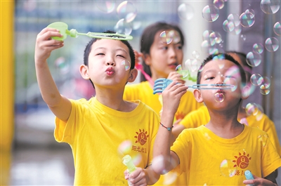 日前,湖北省竹山縣麻家渡鎮(zhèn)星源陽(yáng)光兒童托管家園中的孩子在玩吹泡泡。該兒童托管家園工作人員與留守兒童結(jié)對(duì),與孩子同吃、同住、同活動(dòng),擔(dān)當(dāng)起教師、父母、保姆的三重角色。建園8年來(lái),該機(jī)構(gòu)累計(jì)托管留守兒童2000余人次,有效解決了留守兒童教育管護(hù)的難題。