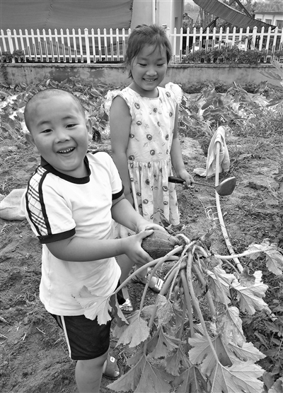 又到夏菜采收季節(jié),山東省五蓮縣松柏鎮(zhèn)中心幼兒園的孩子們?cè)趫@內(nèi)興高采烈地采收土豆和方瓜等蔬菜。他們?cè)趽]汗如雨的同時(shí)也體驗(yàn)了勞動(dòng)和豐收的快樂。