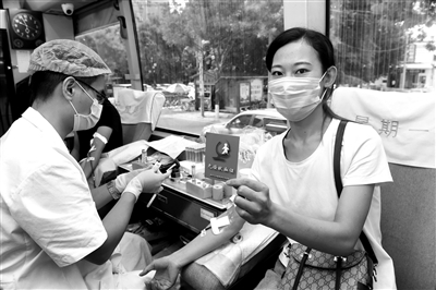近日,教師志愿者在河北省新樂市文化廣場的獻(xiàn)血車上獻(xiàn)血。當(dāng)日,在新樂市政府辦、文明辦、教育局等單位的倡議下,新樂市300多名教師志愿者及市民來到獻(xiàn)血車上,獻(xiàn)血奉獻(xiàn)愛心。賈敏杰 攝