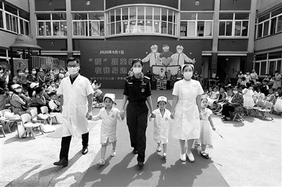 近日,安徽省阜陽市育才幼兒園的開學(xué)典禮以“疫路英雄,在我身邊”為主題進(jìn)行,近60名戰(zhàn)斗在疫情一線的家長代表受邀參加了此次活動,引導(dǎo)幼兒從小厚植家國情懷,努力培養(yǎng)有擔(dān)當(dāng)?shù)臅r代新人。