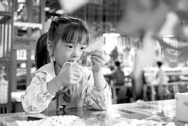 在重慶市北碚區(qū)縉云幼兒園創(chuàng)意工作坊,孩子們在學(xué)習(xí)剪紙。 秦廷富 攝
