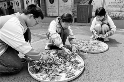 學(xué)生正在涼茶個人實驗室里晾曬草本植物。楊志 攝