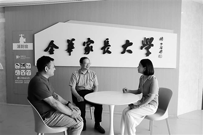 家庭教育專(zhuān)家吳惠強(qiáng)教授(中)在接受金華市中小學(xué)家長(zhǎng)咨詢(xún)。饒旭華 攝