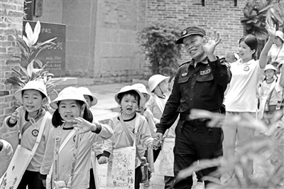入園時(shí),保安與民警、志愿者一同迎接幼兒。遇到情緒低落的幼兒,他們會(huì)主動(dòng)迎上、抱進(jìn)園內(nèi)。離園時(shí),保安與幼兒互道再見(jiàn),完成溫馨的離園儀式。他們更是有心的觀察者:一次,有家長(zhǎng)隨手丟果皮,一名幼兒主動(dòng)撿起扔進(jìn)垃圾桶。保安立刻表?yè)P(yáng)幼兒,并倡議家長(zhǎng)“向幼兒學(xué)習(xí)”。