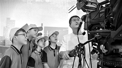 學(xué)生跟隨專業(yè)記者學(xué)習(xí)新聞采編、攝像等技能。 顧冬玲 攝