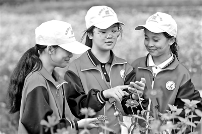 沭陽(yáng)縣懷文小學(xué)學(xué)生在公園中觀察植物的生長(zhǎng)情況,記錄植物的發(fā)芽、開(kāi)花等過(guò)程。胡威 攝