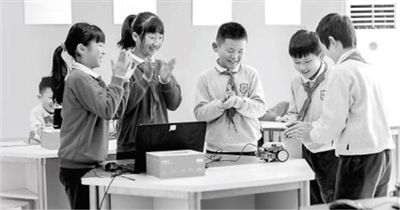 芙蓉區(qū)育英西垅小學(xué)編程社團(tuán)的學(xué)生們通過編程讓機(jī)器人動起來。 學(xué)校供圖