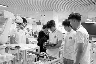 江西制造職業(yè)技術(shù)學(xué)院教師指導(dǎo)學(xué)生實(shí)踐操作。 資料圖片