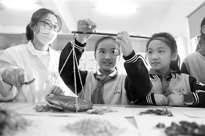 ②浙江省湖州市德清縣乾元鎮(zhèn)中心小學(xué)學(xué)生在學(xué)習(xí)中藥知識。 通訊員 倪立芳 張彩英 攝