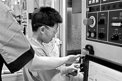 ②小學生體驗操作數控機床。