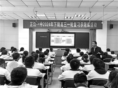 湖南省懷化市芷江一中黨委書記楊華山在上高三一輪復(fù)習(xí)示范課。學(xué)校供圖