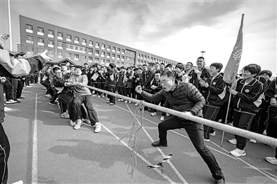 山東省濟(jì)南市歷城二中學(xué)生在進(jìn)行拔河比賽。 學(xué)校供圖
