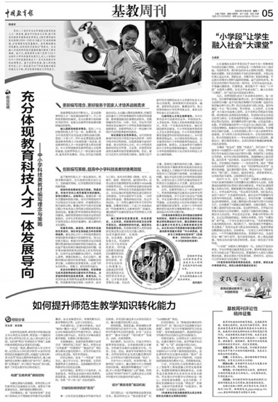 12月22日5版“實踐育人的故事”欄目《“小學段”讓學生融入社會“大課堂”》