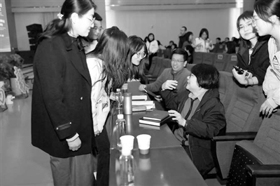孟素琴在陜西省神木市實(shí)驗(yàn)中學(xué)與教師交流閱讀。孟素琴 供圖